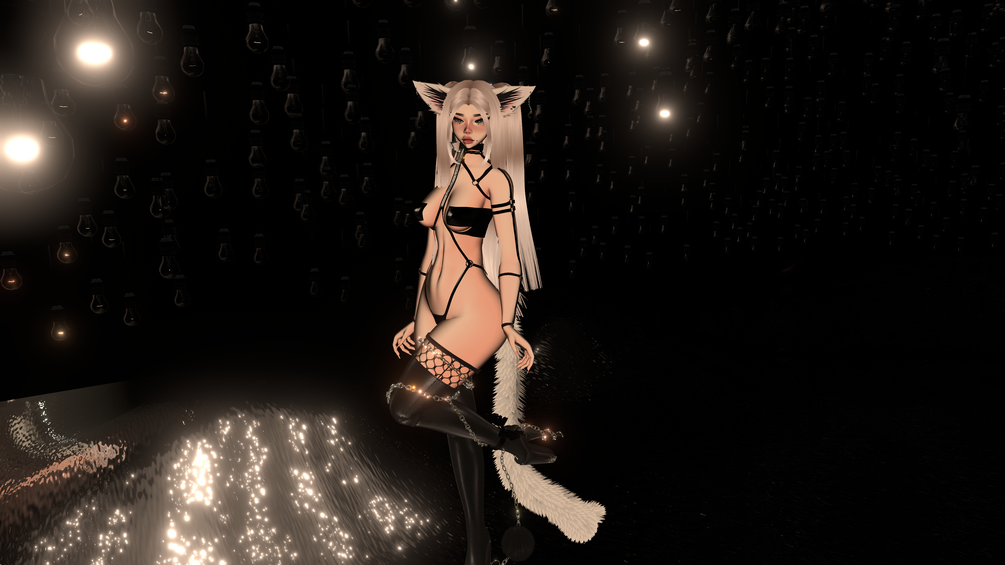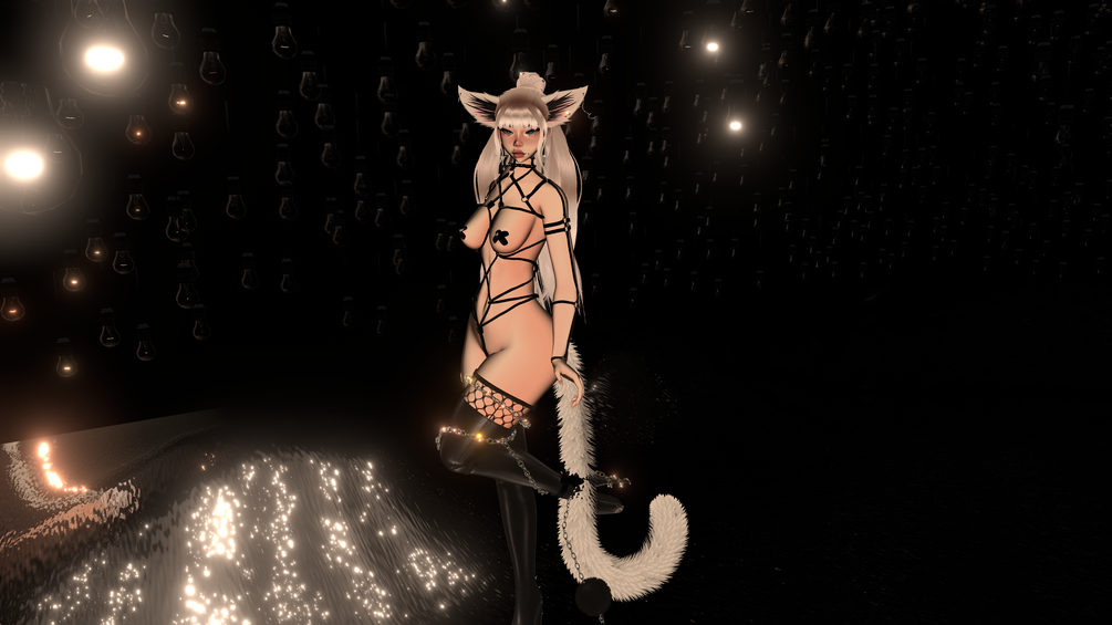zinpia base - (my edit, no reuse), arcade head - (my edit, no reuse), face texture - Saikura#0006, bodysuit , Rope - (nitro asset click 4 discord) , boots , pigtail hair , half up hair , arm harness , tail , ears , earrings , ankle chain , pasties , niprings .